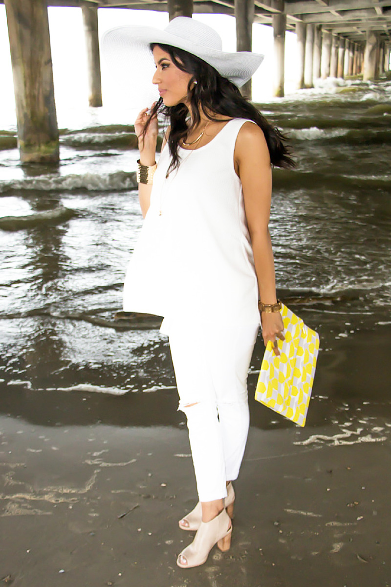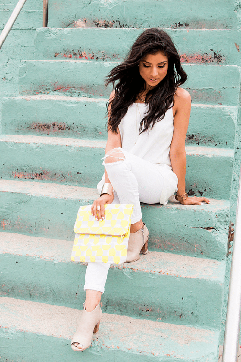 Hello Beauties! Happy Monday, Hope the weekend was fun for you all! Today’s post is short, sweet and simple 🙂 I whipped up this top using a McCall’s Pattern with a few simple modifications. I chose a stable quilted knit from Joann’s fabric and was happy with how the piece came out! It looked a bit “fancy” in my opinion especially for such a quick easy pattern with not very many design features. So that’s a plus! The yellow clutch is a DIY with fabric I picked up from Joann’s as well (red tag remnants section, theres some gems here sometimes)! I used a metal jacket zipper and heavy interfacing to keep the structure. Pattern Review & modifications below! Have a great Monday you all! XOXO